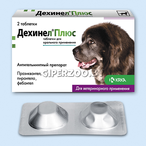 Дехинел Плюс, благодаря входящим в его состав действующим веществам, обладает антипаразитарной активностью в отношении цестод: Echinococcus granulosus, Echinococcus multilocularis, Mesocestoides lineatus, Diphyllobothrium latum, Dipylidium caninum, Multiceps multiceps, Taenia spp. и нематод: Toxocara canis, Toxascaris leonina, Uncinaria spp., Ancylostoma spp., Trichuris vulpis. Фебантел, умеренно всасываясь из желудочно-кишечного тракта, вызывает у нематод угнетение синтеза белка тубулина и процесса поступления глюкозы, одновременно ингибирует фумаратредуктазу — фермент, ответственный за энергетический обмен гельминтов. Пирантел эмбонат очень плохо всасывается при пероральном введении и поэтому, оказывает свое действие непосредственно на поверхности слизистой оболочки желудочно-кишечного тракта больной собаки. Он блокирует у нематод нервно-мышечную передачу импульса и вызывает паралич мускулатуры гельминта, поэтому паразиты легко выводятся из желудочно-кишечного тракта хозяина. Празиквантел хорошо всасывается в желудочно-кишечном тракте и оказывает губительное действие на цестод (ленточных червей) за счет повышения проницаемости клеточных мембран паразитов для ионов кальция и угнетения фумаратредуктазы, что вызывает спастическое сокращение мускулатуры паразита, переходящее в паралич. Празиквантел выделяется с желчью в неизменном виде. Дехинел Плюс по степени воздействия на организм теплокровных животных относится к малоопасным веществам и в рекомендуемых дозах не оказывает сенсибилизирующего и гепатотоксического действия.