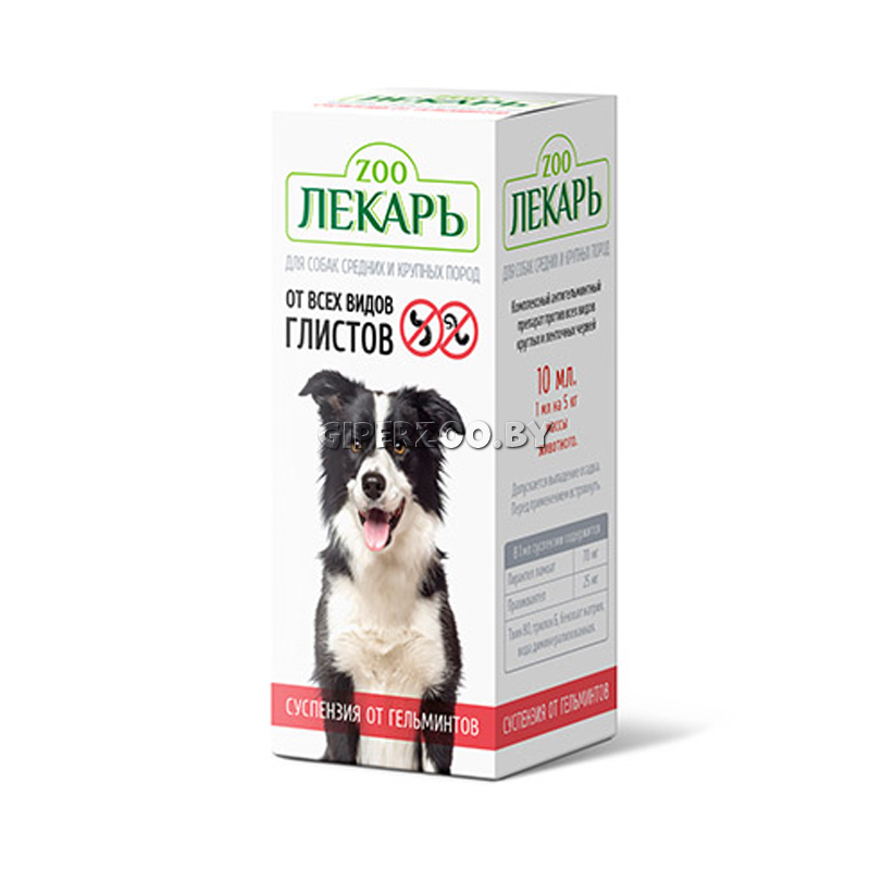 Суспензия от гельминтов ZOOЛEKAPЬ для собак средних и крупных пород, 10 мл