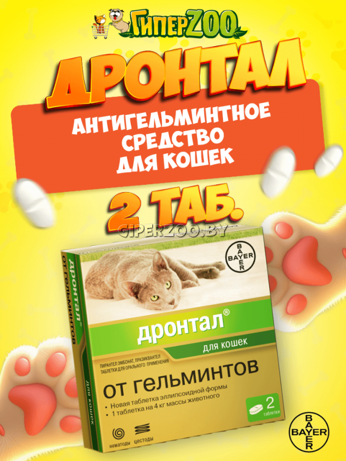 ДРОНТАЛ для кошек - антигельминтное средство широкого спектра действия для профилактики и лечения гельминтозов у кошек.