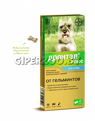 Дронтал Плюс для собак в форме косточки, 6 табл