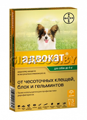 Bayer Адвокат капли на холку для собак до 4 кг, 3 пип