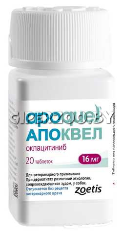 Апоквел применяют собакам перорально индивидуально с руки, или в смеси с кормом, или вводят принудительно в пасть в разовой дозе 0,4-0,6 мг оклацитиниба на 1 кг массы животного два раза в день, не более 14 суток; в качестве поддерживающей терапии при атопическом дерматите – один раз в сутки в той же дозе, но не более 14 недель. Схема и длительность курса применения препарата зависят от этиологии и патогенеза дерматита, клинического состояния животного и определяются лечащим ветеринарным врачом.