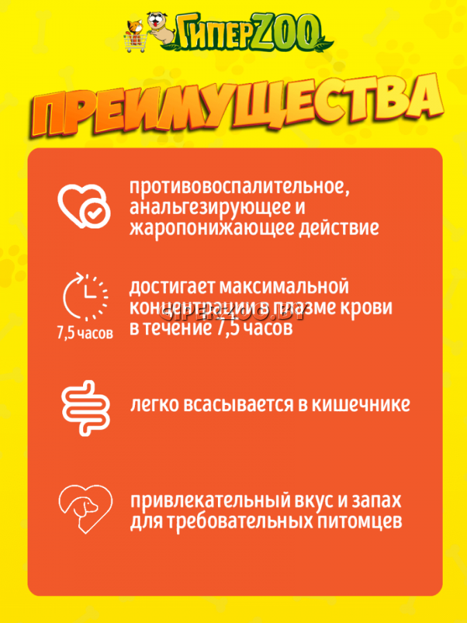 При пероральном применении лекарственного препарата мелоксикам легко всасывается в кишечнике и достигает максимальной концентрации в плазме крови в течение 7,5 часов, период полувыведения составляет 24 часа. Метаболизируется мелоксикам в печени, выводится из организма главным образом с желчью (до 75%) в основном в виде метаболита глюкуроновой кислоты.