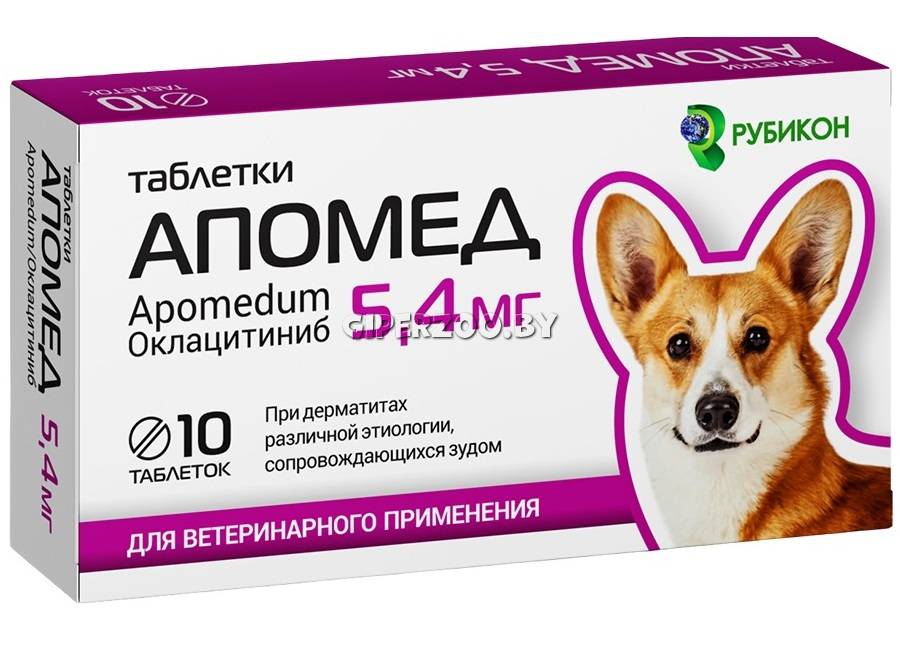 В одной таблетке Апомед 3,6 мг, Апомед 5,4 мг и Апомед 16 мг содержится соответственно 3,6 мг, 5,4 мг и 16 мг оклацитиниба (в форме оклацитиниба малеата).