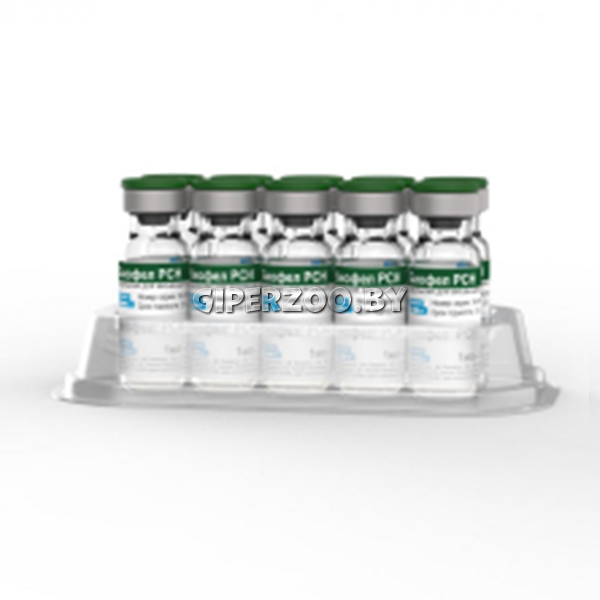 Вакцину хранят и транспортирую]' в закрытой упаковке производителя в сухом защищенном от света месте при температуре от 2 до 8°С, отдельно от продуктов пита пи и кормов.