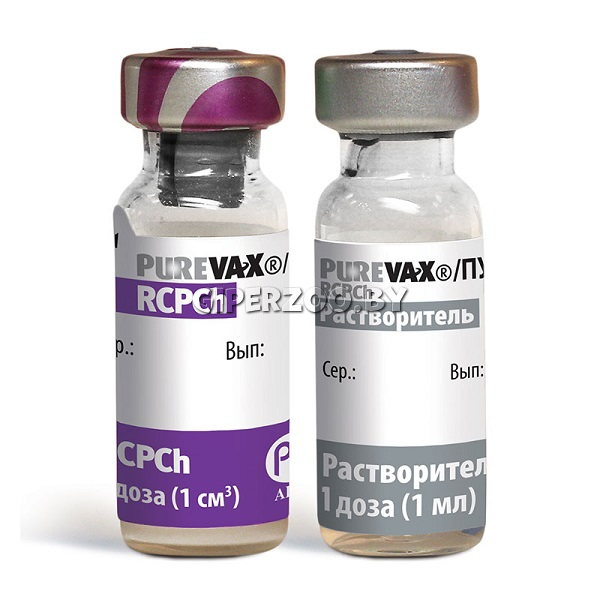 Вакцина Пюрвакс RCPCh содержит в своем составе: аттенуированный штамм вируса инфекционного ринотрахеита кошек FHV F2, комбинацию двух инактивированных штаммов вируса калицивироза кошек FCV 431 и FCV G1, аттенуированный штамм вируса панлейкопении кошек PLI IV и аттенуированный штамм хламидиоза кошек 905. Представляет собой лиофилизированную, сухую, однородную, пористую массу белого цвета. Вакцину расфасовывают в стеклянные флаконы по 1 дозе и упаковывают в пластиковые коробки, которые содержат 10 флаконов вакцины (10 доз) и 10 флаконов растворителя по 1 мл.