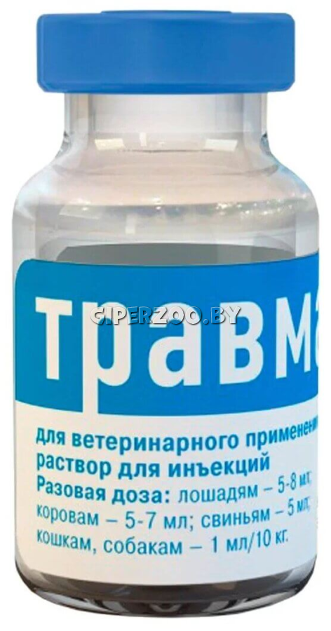 Травматин назначают собакам, кошкам и сельскохозяйственным животным в комплексной терапии травматических повреждений, в том числе при родовых травмах, а также при лечении случайных и операционных ран.