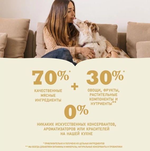 - 1-ые 3 ингредиента в составе - это свежие или сырые мясные ингредиенты