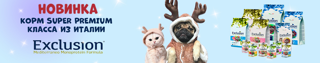 Итальянские консервы и корм для собак суперпермиум класса EXCLUSION Monoprotein - монопротеиновый рацион для кошек и собак всех пород.