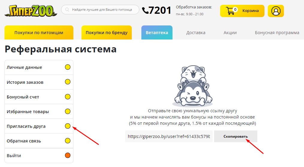 - Зарегистрируйтесь в личном кабинете на сайте Giperzoo.by.
