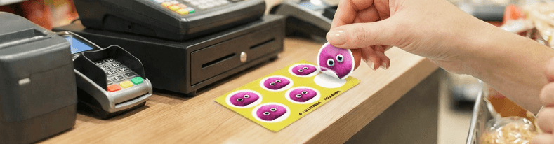 Приклейте полученную наклейку в карточку. Чем больше покупок — тем быстрее соберёте все 6!
