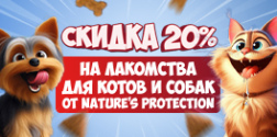 Побалуйте своих пушистиков лучшими угощениями со скидкой 20% от Nature's Protection