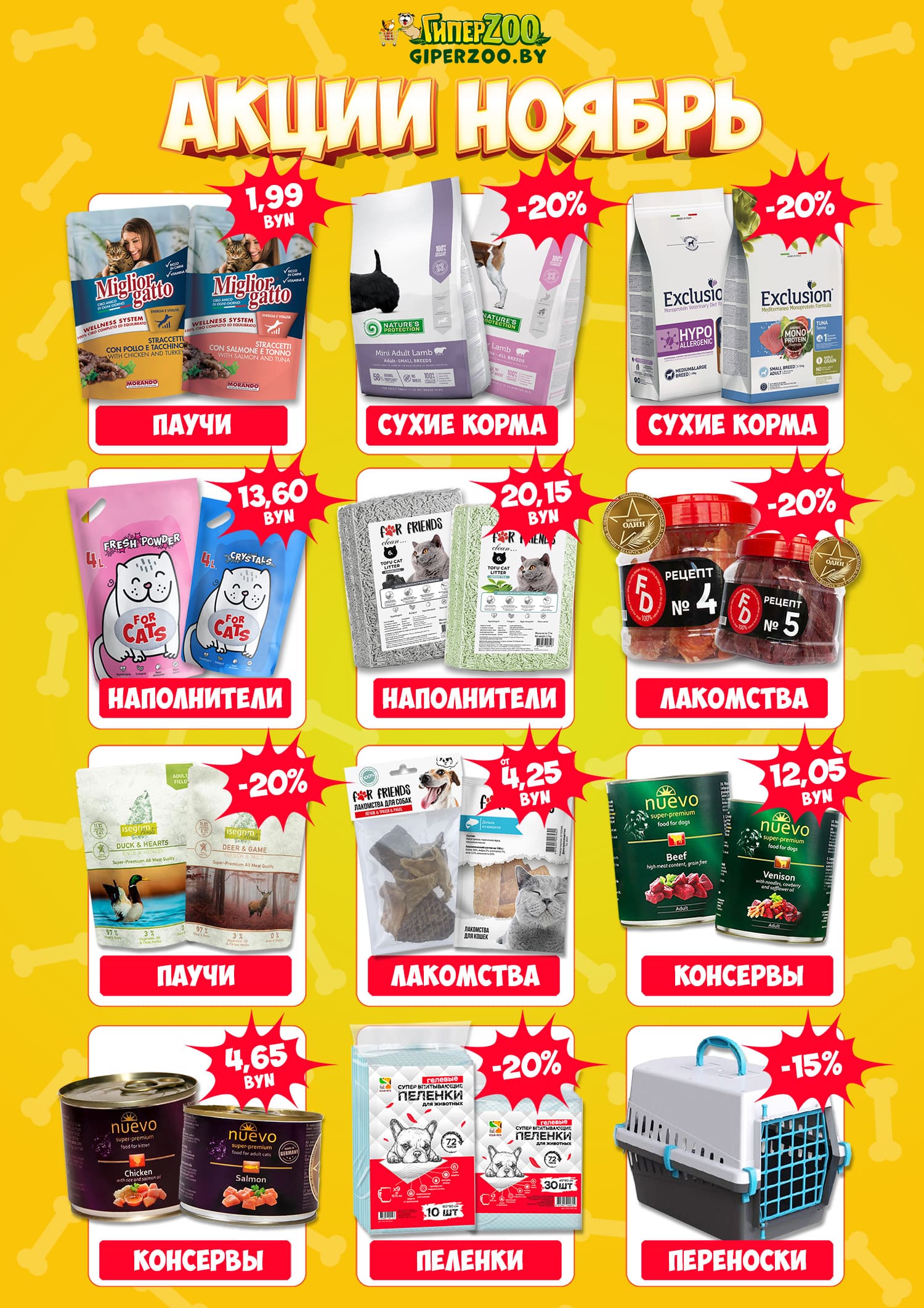 Дорогие друзья! В этом месяце мы рады предложить вам удивительные акции на самые необходимые товары для ваших хвостиков!