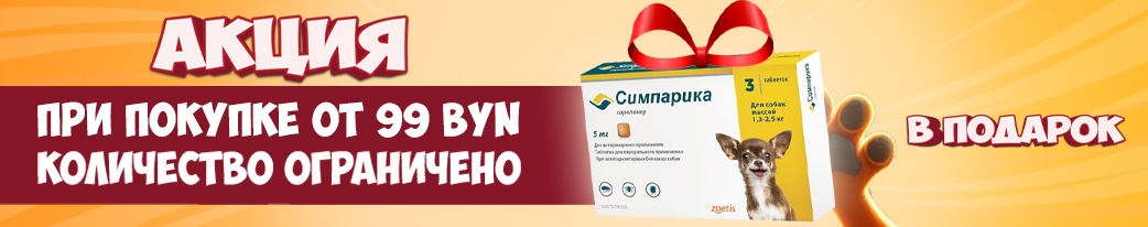 При разовой покупке сухих кормов для собак брендов Nature's Protection, Exclusion, MORANDO или Nuevo на сумму от 99 BYN Симпарика 5 мг в подарок!