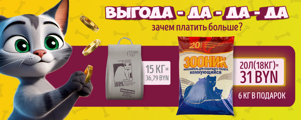 Зачем переплачивать если можно сэкономить. Выбирайте бентонитовый наполнитель ЗООНИК 20 л (18кг) больше на 3кг в упаковке и дешевле популярного NO NAME (15кг).