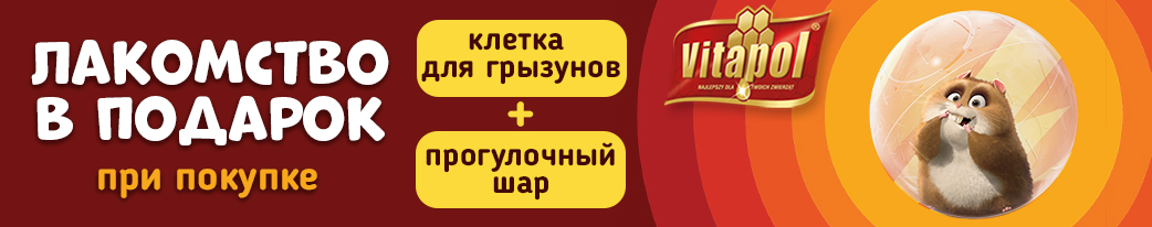 Обновите старую клетку, дополните будни грызуна прогулками в шаре и получите приятное дополнение к покупке в виде любимого лакомства Vitepol для всех грызунов.