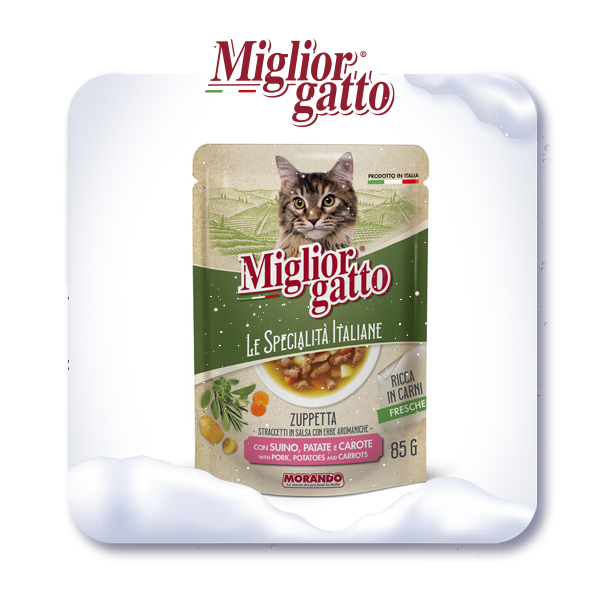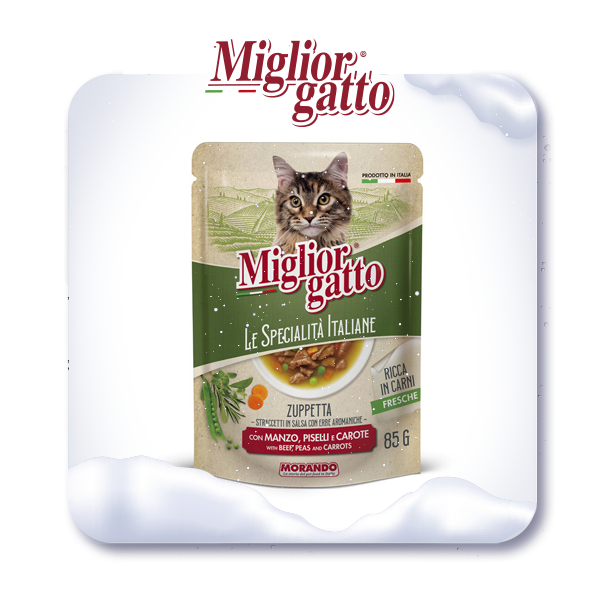Новый Год — время подарков, и Ваш пушистик заслуживает самого лучшего! Итальянские супчики Miglior Gatto — это не только изысканный вкус, но и забота о здоровье вашего питомца. А сейчас — по специальной цене