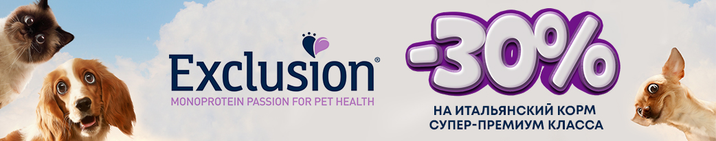 Весь июнь и июль акция на итальянский корм супер-премиум класса EXCLUSION - скидки до 30% на всю линейку кормов.