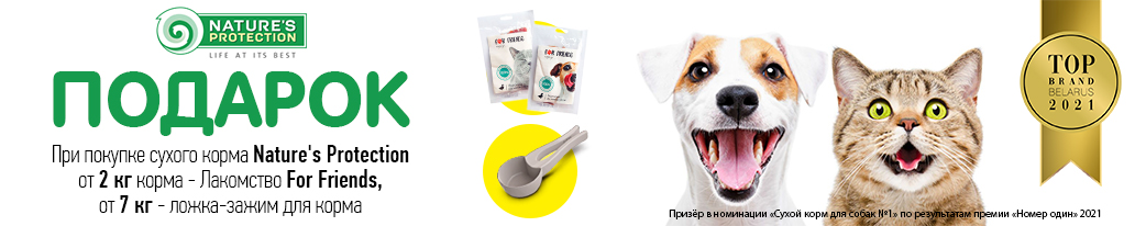 Покупайте корм Nature's Protection для собак и кошек с доставкой или самовывозом и получайте натуральные и вкусные лакомства For Friends или удобный совок-прищепку в подарок!