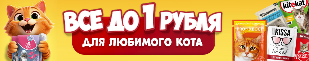 🛒 Смотрите раздел с влажными кормами для кошек до 1 рубля